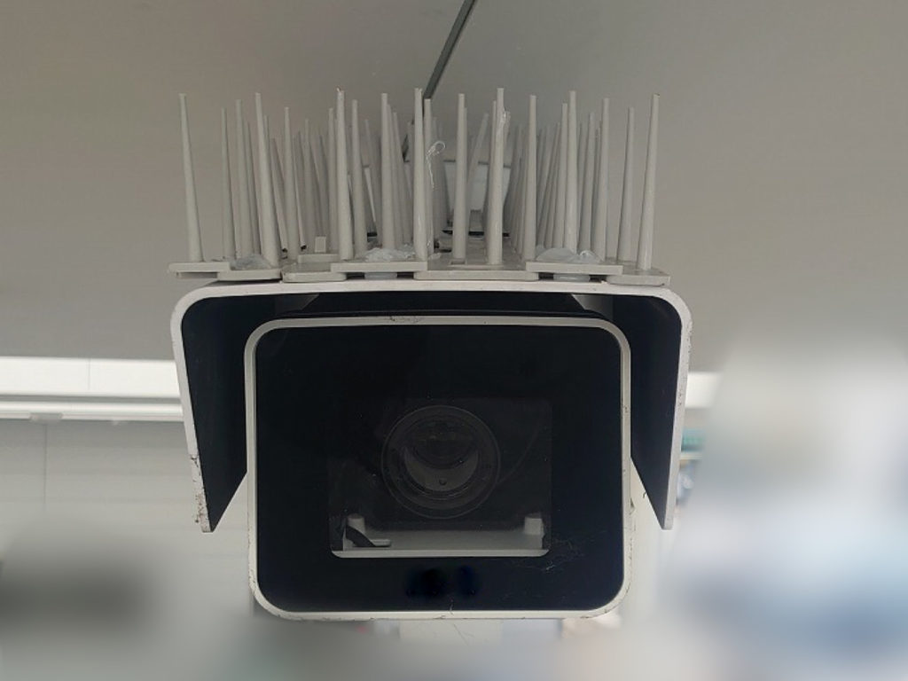 今回はこうしたリスクを防ぐため、カメラのハウジング部分に鳥よけスパイク(いわゆる「トゲトゲ」)を設置し、鳥が止まれない環境を構築しました。