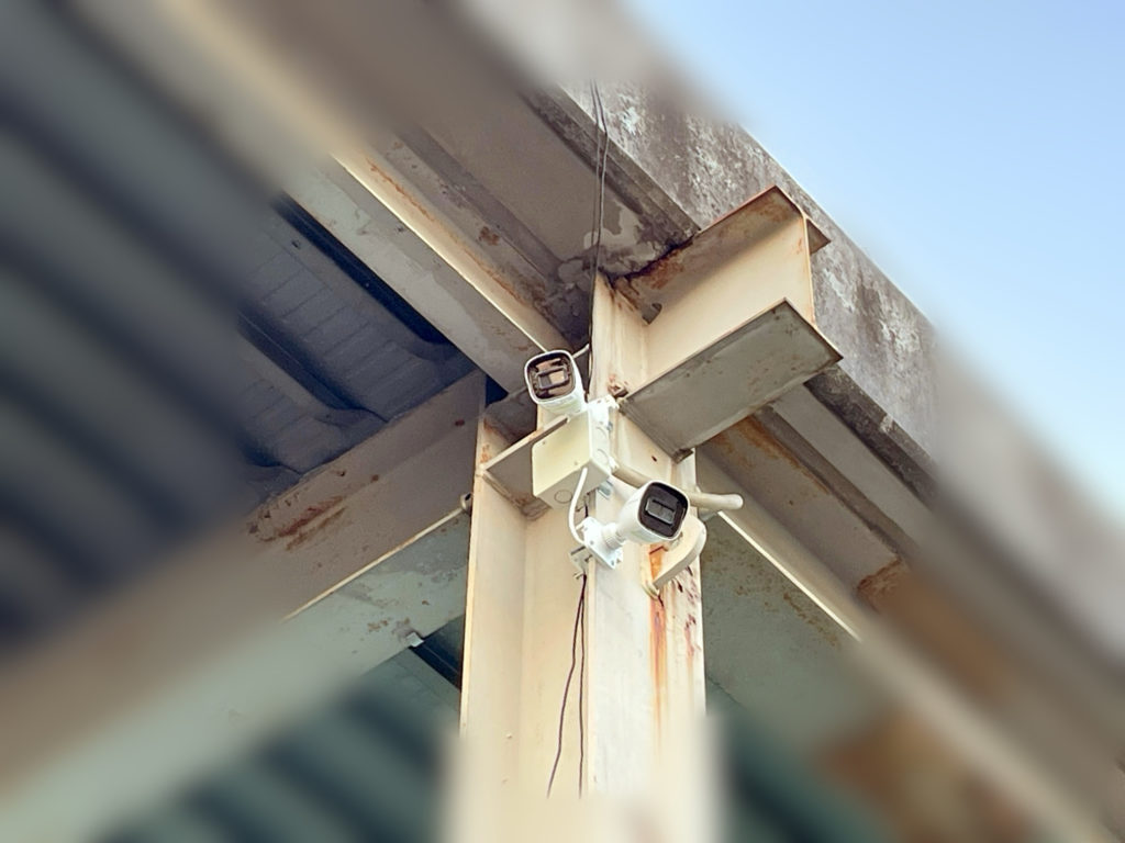 工場構内の原料資材搬入口に並ぶトラックの待機状況をリアルタイムで確認するため、防犯カメラシステムを導入しました。